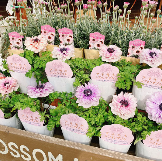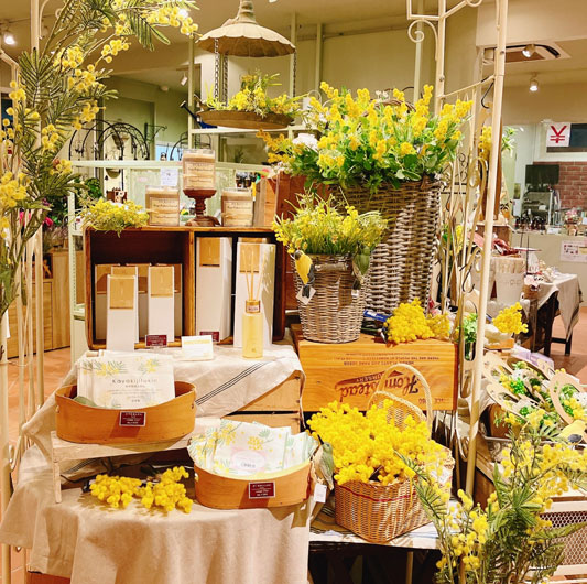 ガーデン出入口の前にショップがあり、ご来場者様が必ず通るので、入口正面にメインの商品を陳列。帰り際に思わずショップに立ち寄りたくなるような工夫をされています。最近ではSNSの普及により若い世代のお客様が増えたため、取扱い商品を客層に合わせ少しずつ変えているそうです。