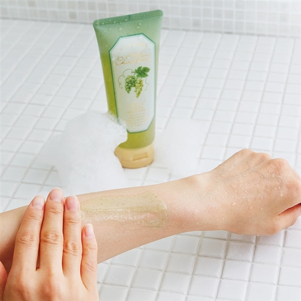 果汁味あふれるシャルドネの心地よい香りに包まれながら、肌の汚れや古い角質を穏やかに落とすスクラブ入りボディーソープ。天然由来成分95%配合で、やわらかく整えながらもっちりすべすべ肌へ。