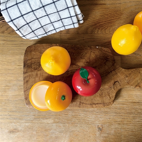 みかんのフォルムがインパクト大!やさしく懐かしいみかんの香りの保湿バーム。ワセリンベースにうるおい成分シアバター配合で、乾燥が気になる指先や唇をしっとりうるおします。肌にスッと伸びるので少量ずつ指にとって使うのがポイント。
