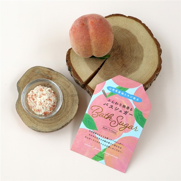 袋を開けるだけで広がる、爽やかな甘さの桃の香り。石垣島産のさとう(*)を使った肌にやさしい贅沢処方の入浴料。肌をうるおす山梨県産モモ果汁(保湿成分)配合で、のんびり贅沢なバスタイムをお楽しみください。