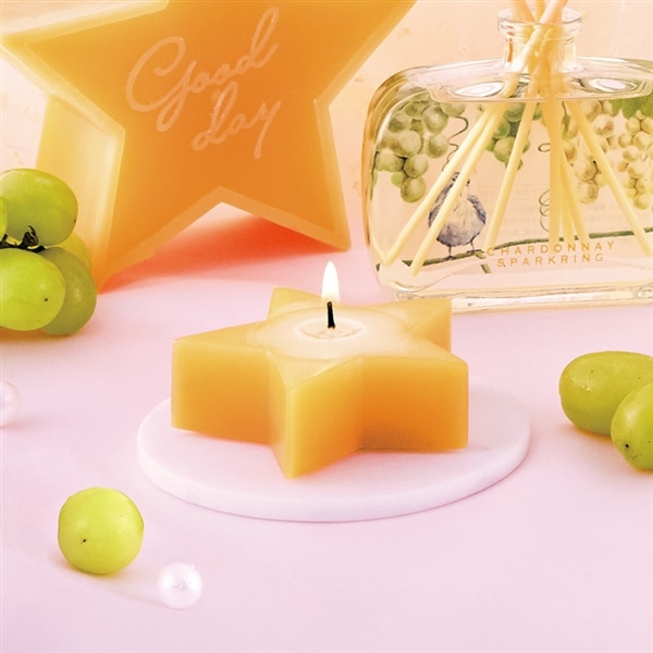 星型が目を引くキャンドルオブジェ。火を灯せば樽の香りを思わせる芳醇で軽やかなシャンパンの香りが漂います。火を灯さず芳香インテリアとして飾るのもおすすめです。