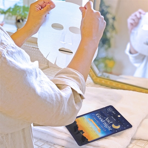 安らぐ天然アロマがほのかに香る、美容液たっぷりのうるおいフェイスマスク。