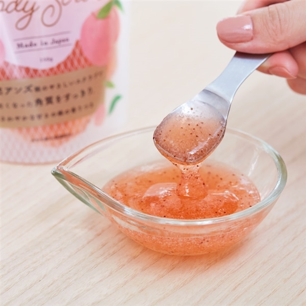 でんぷんベースと天然アンズ核のやさしいスクラブで古い角質をすっきり取り除く、もっちり感触のマッサージスクラブ。