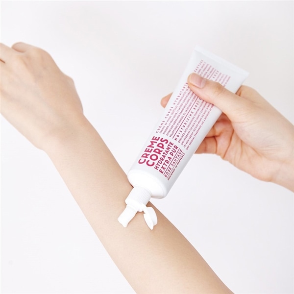 スイートアーモンドオイル、シアバター、オリーブオイル、グレープシードオイル(いずれも保湿成分)が肌にうるおいを与え、やわらかくなめらかに整えるボディー用保湿クリーム。