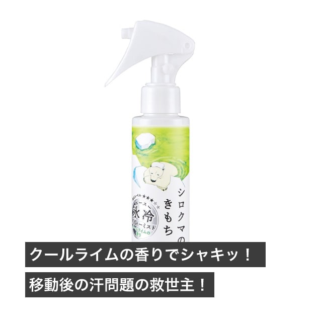 火照った肌が冷えきもちいい冷感ボディーミスト。外遊びやスポーツの後に、お風呂上がりの肌に。保湿成分植物エキス配合、清涼成分メントール配合。