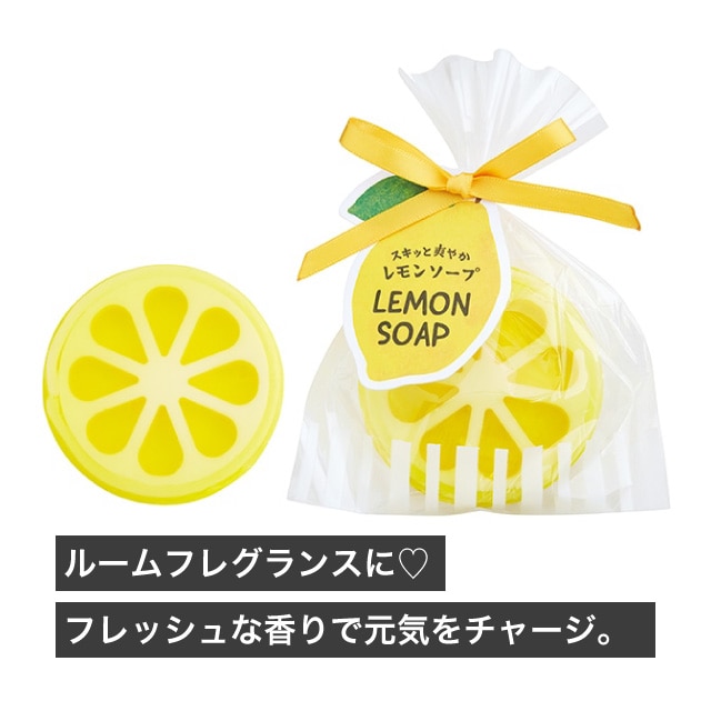 かわいい輪切りのレモン石けん。ちょっとした贈り物に添えて。スッキリと爽やかに広がる、あまずっぱいレモンの香り。