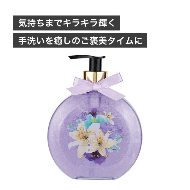 パールのようにキラキラ輝く、華やかなハンドソープ。洗面まわりに彩りを添えます。