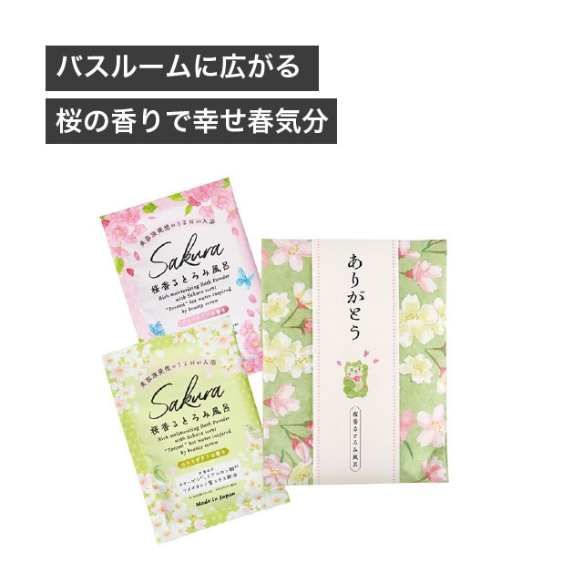 やわらかとろみ湯が楽しめるバスパウダー2包セット。お祝い事に使われてきた伝統的な万葉包みと縁起のよいモチーフに、メッセージを添えてお福わけ。