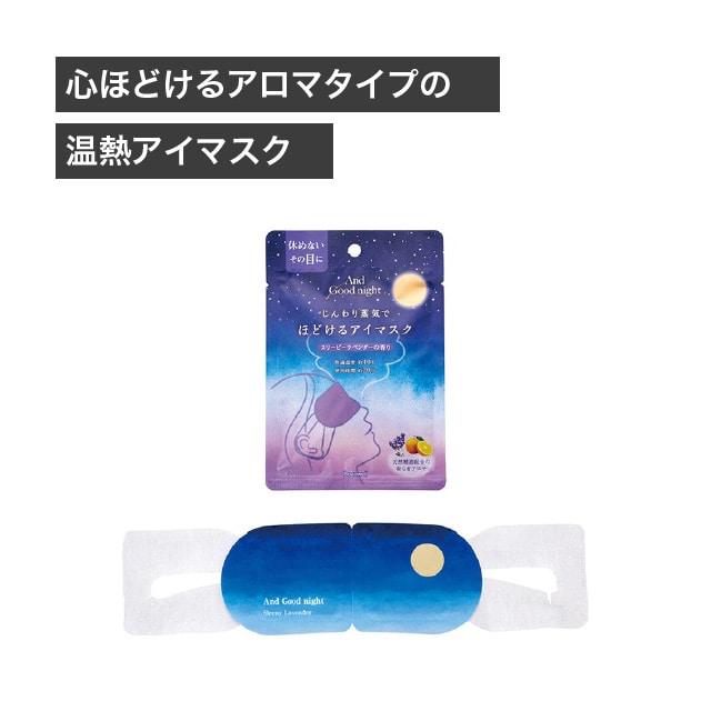 あったか心地よい蒸気で目と目元をじんわりと温め、心ほどけるアロマタイプの温熱アイマスク。仕事やゲームなどでPC・スマホを使い過ぎた時に、ほっとひと息つきたい時に。