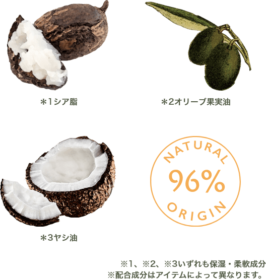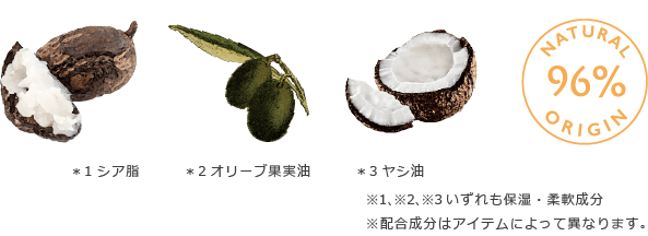 保湿力に優れたシアバター*1、オリーブオイル