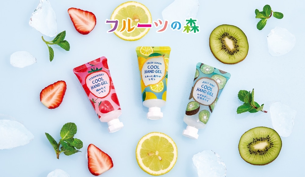 肌をうるおして整えるフルーツエキスと植物エキスに、ひんやり気持ちよい清涼成分を配合。
