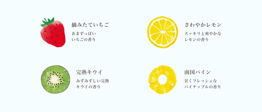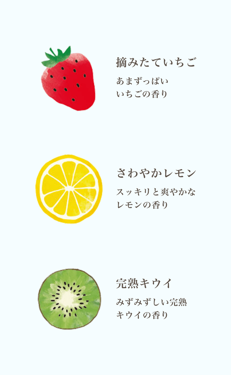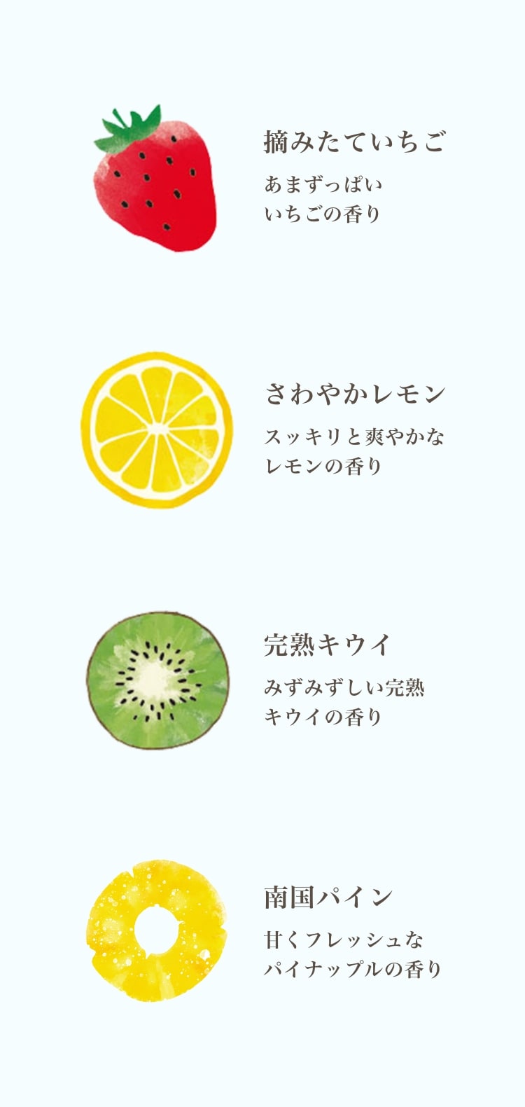 ジューシーで爽やかなフルーツの香りを楽しみながら、すっきりうるおい手肌に。