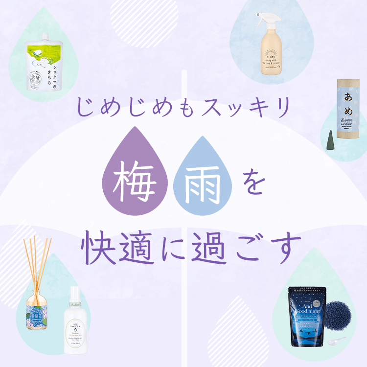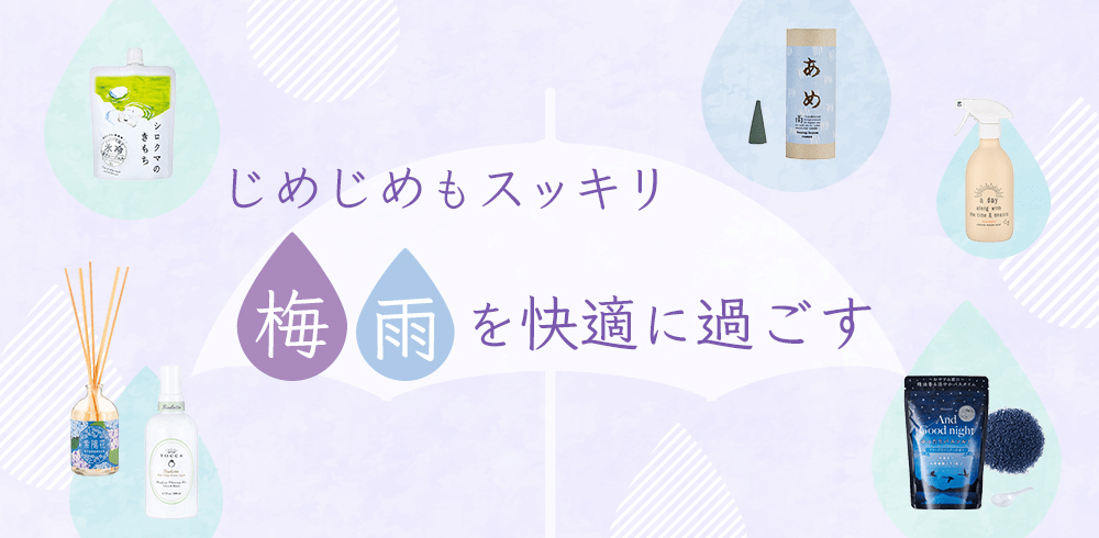 じめじめ気分を吹き飛ばす、梅雨を快適に過ごすための香りのアイテムをラインナップしました。