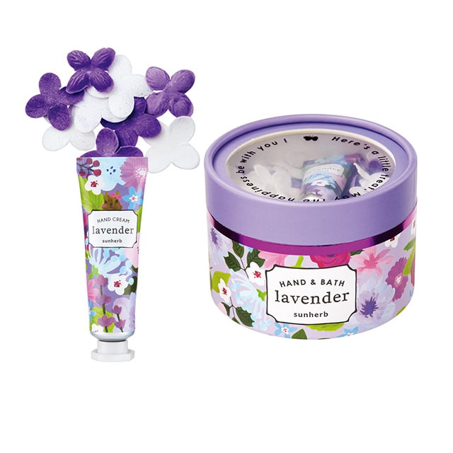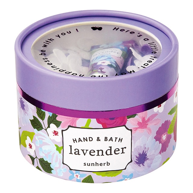 - 花柄のラウンドパッケージが目を引く、ハンドクリームと泡風呂を楽しめる入浴料のセット。窓からは、お花畑でかくれんぼしているかわいい仲間が覗きます。大切な人への贈り物に。