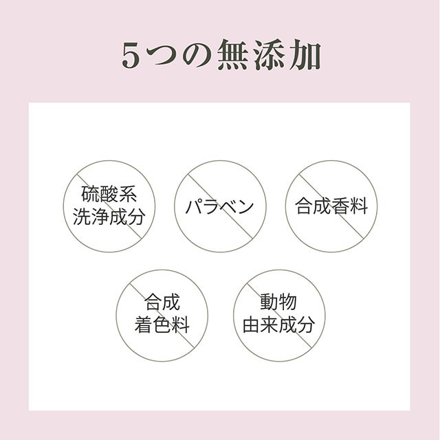 - 水、コカミドプロピルベタイン、デシルグルコシド、オレフィン(C14-16)スルホン酸Na、塩化Na、ラウロイルラクチレートNa、ポリクオタニウム-7、加水分解コムギタンパク(小麦)、テトラステアリン酸PEG-150ペンタエリスリチル、カミツレ花エキス、ゴボウ根エキス、セイヨウイラクサ葉エキス、スギナエキス、ホップ花エキス、カラスムギ穀粒エキス、フェノキシエタノール、安息香酸、デヒドロ酢酸、硫酸Mg、クエン酸、香料