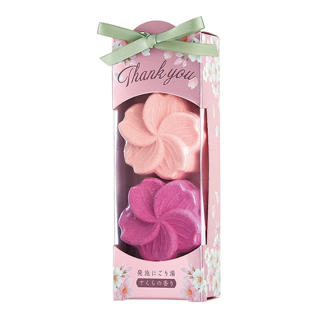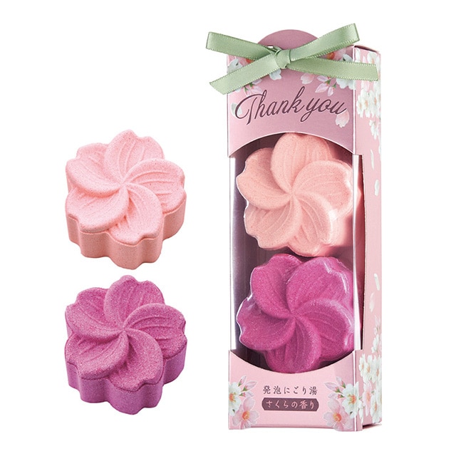 お湯に入れるとシュワシュワ溶け出し、肌をうるおすにごり湯が楽しめます。春を感じる贈り物に。