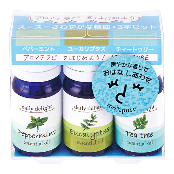 - ペパーミント、ユーカリプタス、ティートゥリー