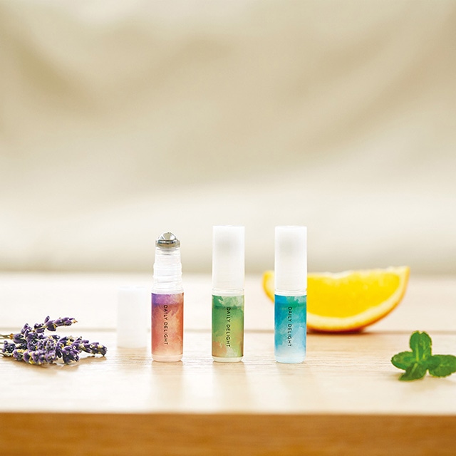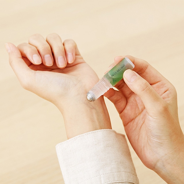 - 厳選した天然精油にスキンオイルと和漢植物エキスをブレンドしたアロマオイル。肌に直接お使いいただけます。ローラーでぐっと押したり、手で肌になじませてマッサージにも。心を落ち着けて、ゆっくりと深呼吸。天然のやわらかな香りで至福のひとときをお愉しみください。