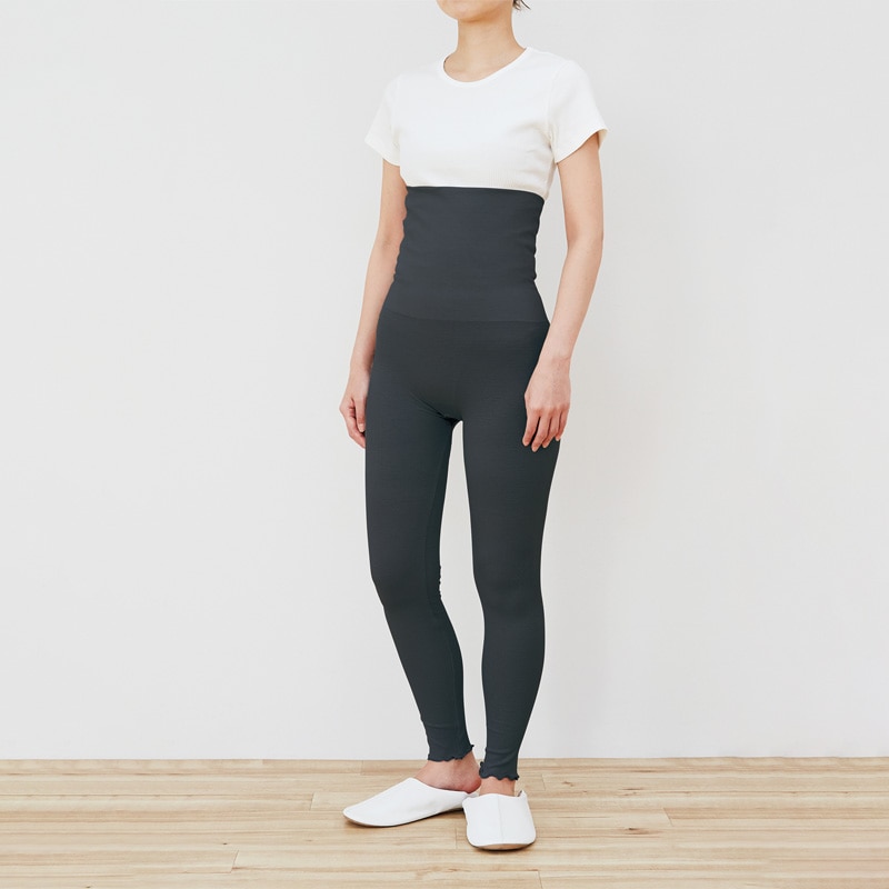 腹巻とレギンスが一体になっているため、しゃがんでもボトムの上からインナーが見えることが無く安心です。