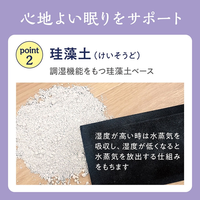 - 素敵な夢が見られるかも!?調湿機能を持つといわれる珪藻土を使った枕用の香り袋。枕カバーの中に入れれば精油100%の天然アロマがふんわり香り、心地よい眠りをサポートします。