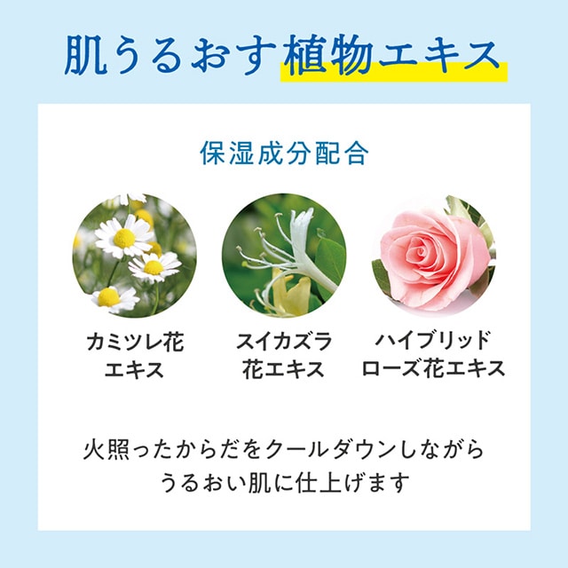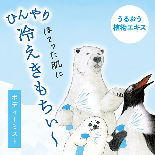 - 火照ったからだにひんやりきもちぃ~。 肌うるおす植物エキス配合のクールボディーミスト。 夏の外あそびやスポーツの後、お風呂上がりの肌にシュッとひと吹き。