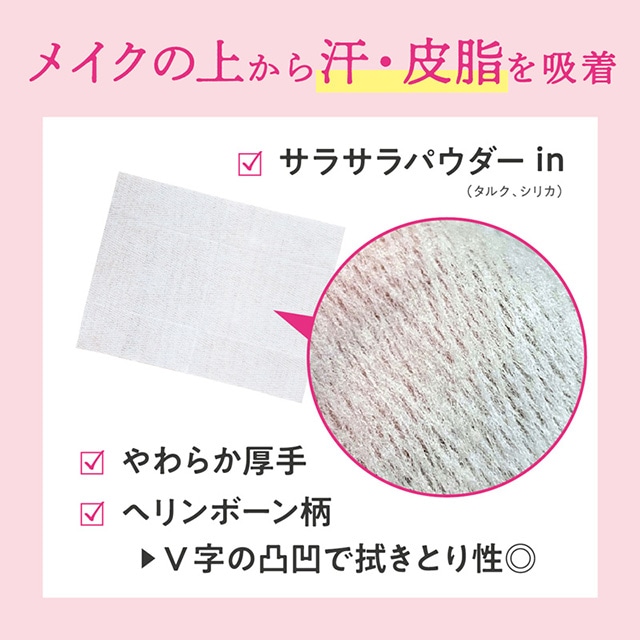 - ○表面の透明シールをOPENのところから開け、シートを1枚ずつ取り出してご使用ください。シートは両面使えます。 〇メイクの上から使用する時は、肌をこすらずやさしく押さえるようにご使用ください。メイク崩れを拭き取ることができます。 ※シートの乾燥を防ぐため、使用後は必ずしっかりシールを閉めてください。
