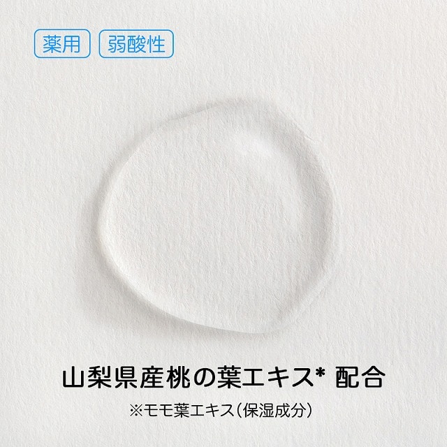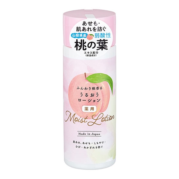 乾いた肌に桃の葉エキス(桃葉エキス 保湿成分)が角質層までしみこんでうるおす。素肌を整えてしっとりうるおす、弱酸性の全身用保湿化粧水。肌あれ・あせも・しもやけを防ぎ、肌をすこやかに保ちます。顔・からだ用