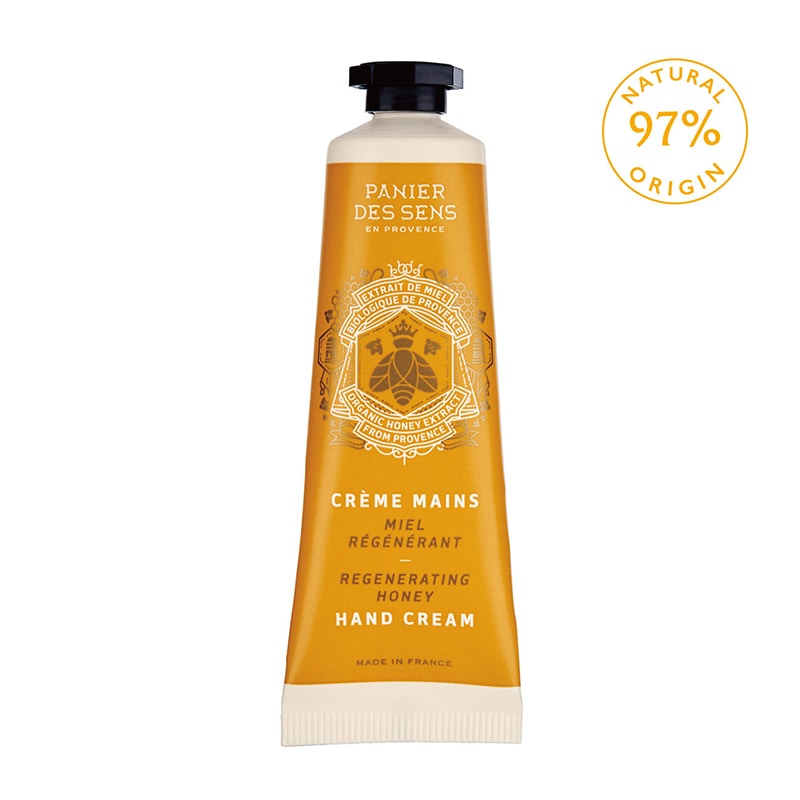 保湿成分シアバター*をベースに、植物オイル、ハチミツエキス、製肌成分プロポリスエキスを配合。コクのあるクリームがとろけるように手肌へなじみ、ベタつきのないテクスチャーで乾燥から守ります。おいしそうなハチミツが繊細に香り立つ、うるおいに満ちたやわらかい手肌へ。