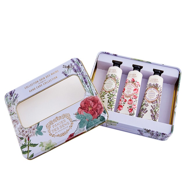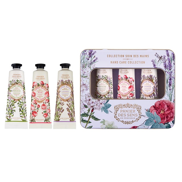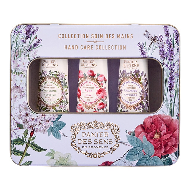 プロバンスの豊かな自然を感じさせる華やかなギフト缶に、濃密保湿ハンドクリームの持ち運びサイズが3本セットになりました。シアバター*とオリーブ油*を贅沢に配合。コクのあるリッチなテクスチャーが乾燥する手肌をうるおし、精油の豊かな香りが広がります。