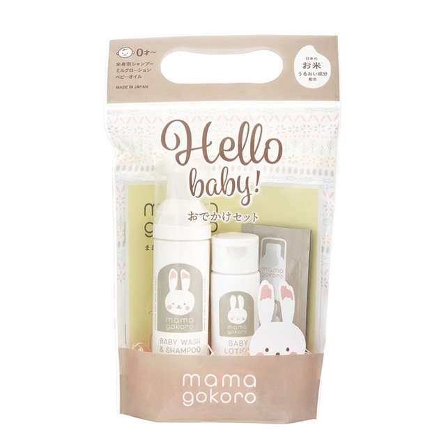初めてのおでかけやお泊りにぴったりのスキンケアセット。ミニサイズのベビー全身シャンプー、ベビーミルクローション、ベビーオイルの3点セットで自分使いにも、おくりものにもオススメです。