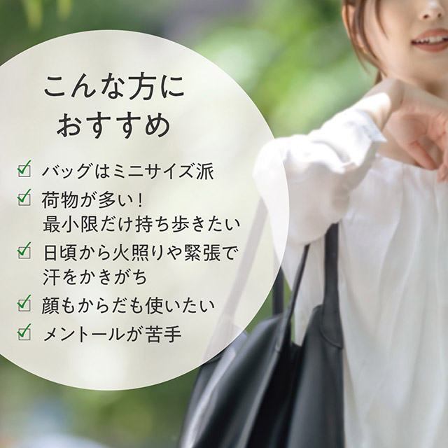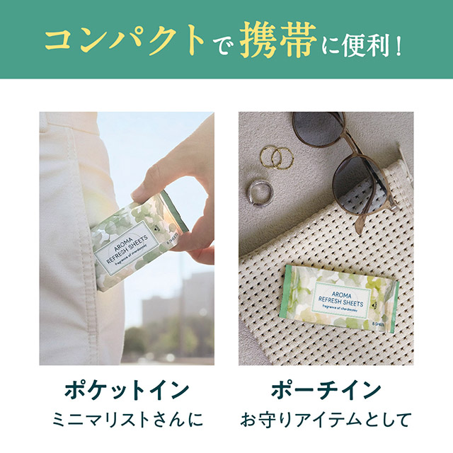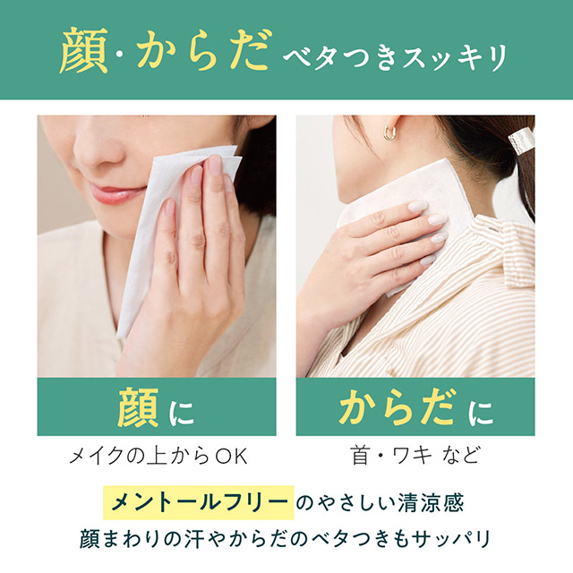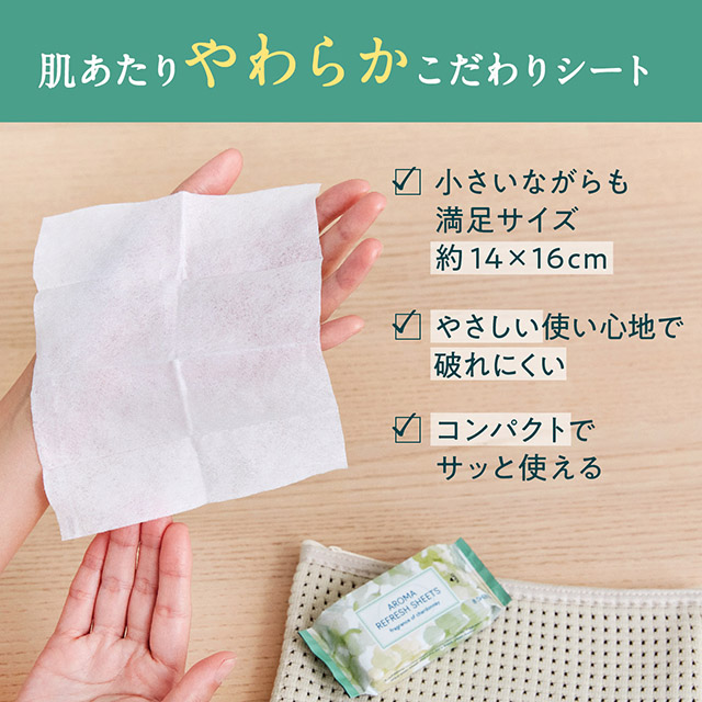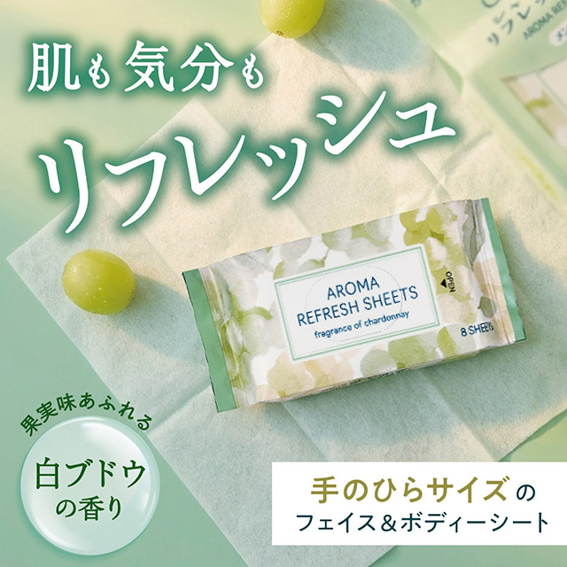 - 爽やかなシャルドネの香りがふんわり広がる、ひんやりタイプの汗拭きミニシート。メントール不使用のやさしい清感と、肌あたりやわらかなシートで、暑い日でも肌にやさしく、すっきりリフレッシュ。汗やベタつきをスッと拭き取り、顔もからだも心地よく整えます。コンパクトなミニサイズだから、バッグに入れてもかさばらず、通勤・通学やお出かけ、部活動など、さまざまなシーンで活躍します。