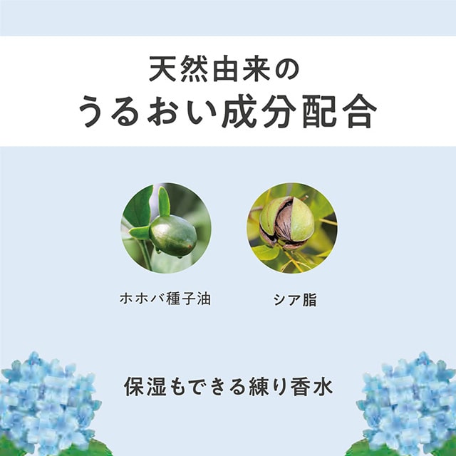 - 紫陽花が香り立つフレグランス。持ち運びに便利なチューブタイプで、いつでも手軽に香りを楽しめます。