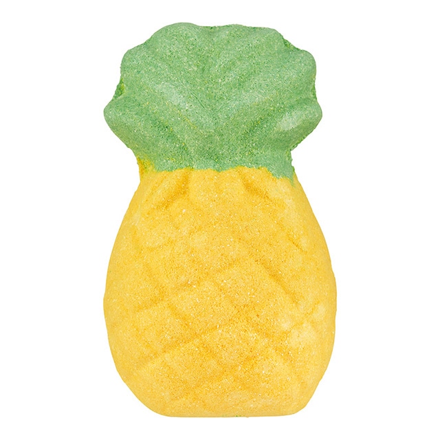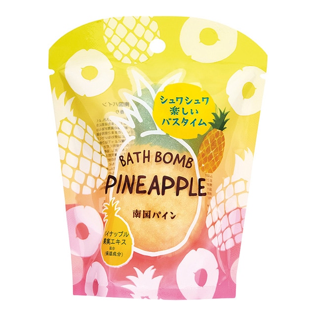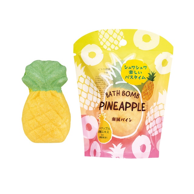 - お湯に入れた瞬間はじける泡が楽しい、パイナップルの発砲バスボム。肌をうるおすパイナップル果実エキス配合。夏の楽しいバスタイムを贈るギフトにもオススメ。