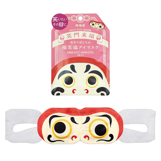 縁起物をモチーフにした福笑いのような温熱アイマスクで笑顔を作って福を招きましょう。
