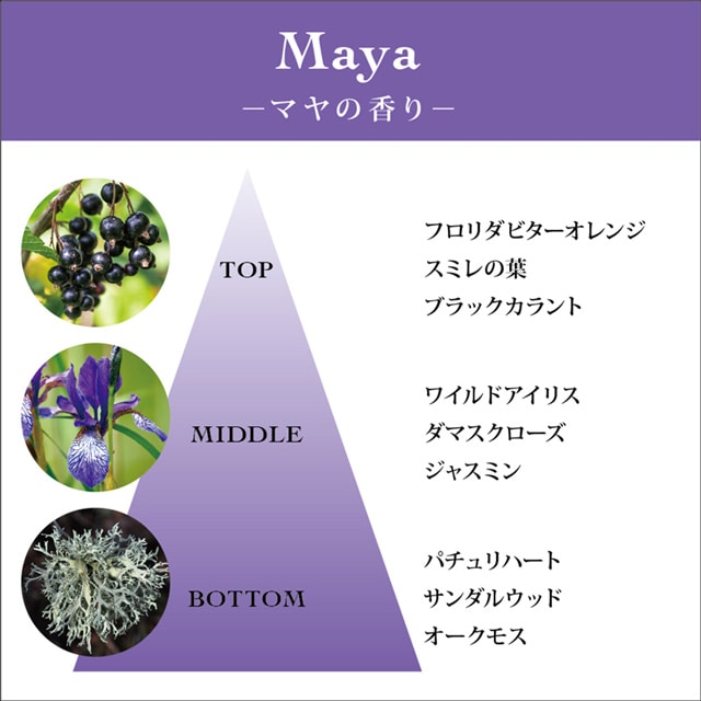 ワイルドアイリスにブラックカラントが交わり、美しさの中に思慮深さを感じさせる優雅な香り。
