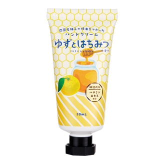四国産ユズ精油の香りを楽しむハンドクリーム。ワセリンとユズ果実エキス(いずれも保湿成分)が手指をしっかりうるおします。ほんのり甘いゆずはちみつの香り。